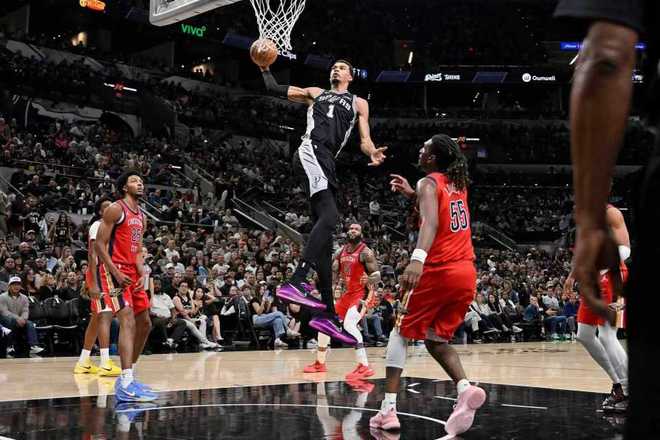 - 文班18+18马刺险胜鹈鹕 福克斯复出首秀24分墨菲41+9